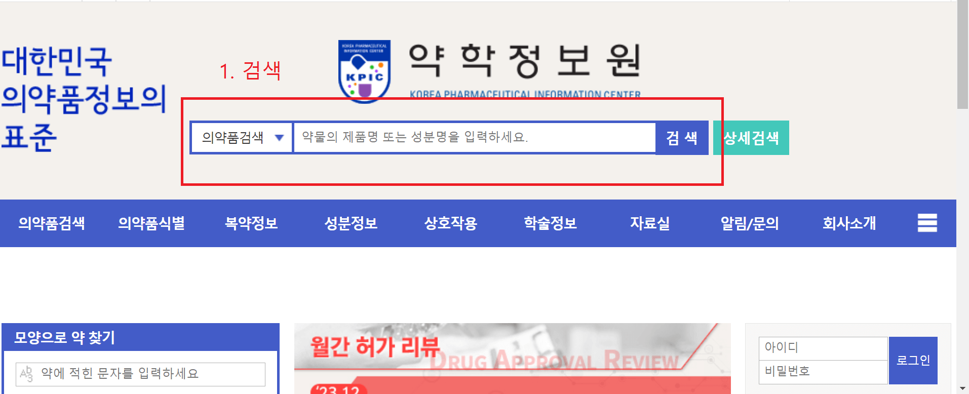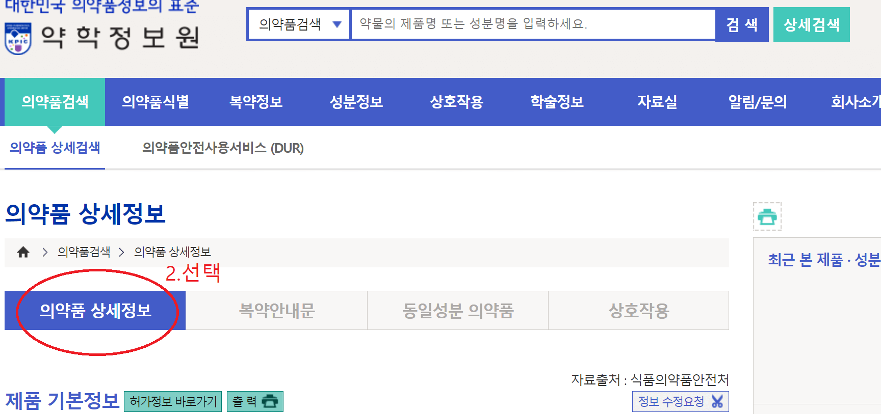 - 의약품 상세정보 카테고리를 클릭합니다.