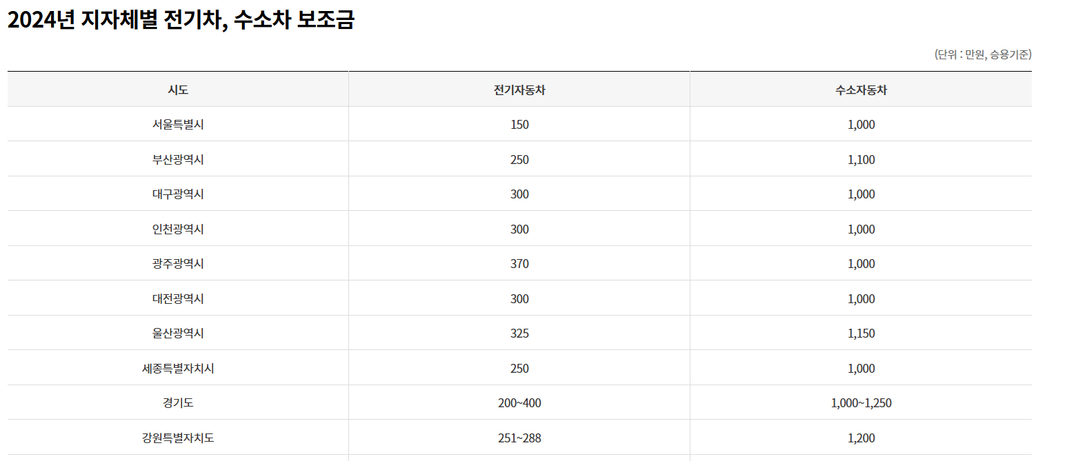 차량 유형에 따라 보조금이 다르게 책정됩니다.